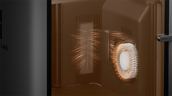The P2S does not have an active chamber heating function, but it can regulate chamber temperature through its enclosed chamber and automatic switching flap between internal and external circulation.