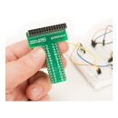 Breadboard Breakout for Analog Discovery. Equipped with one 2x15 female header to connect the Analog Discovery or Ribbon Cable and 30 male pins broken out to fit into a standard breadboard.