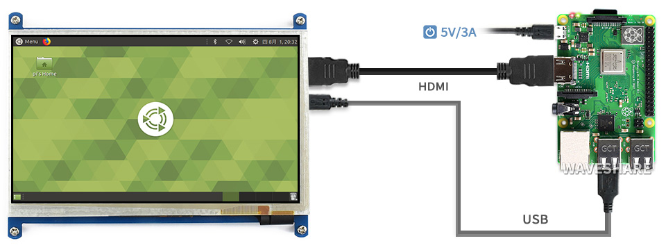 7 Zoll kapazitiver Touchscreen LCD (B), 800×480, HDMI, niedriger Stromverbrauch