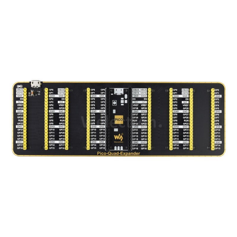 Vierfach-GPIO-Expander für Raspberry Pi Pico, vier Sätze von Stiftleisten für den Anschluss weiterer Erweiterungsmodule, USB-Stromeingangsanschluss